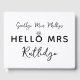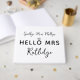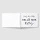 Chá de panela de hóspedes em branco com um charmoso design de tipografia dizendo "adeus, senhorita oi" com um diamante sobre o o para criar um anel de noivado e personalizado com o nome de solteira e o novo nome como esposa.