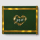A design apresenta pombas e corações vinculados em um fundo verde esmeraldo com bordas de fita. Espaço para colocar o nome do casal na frente e os nomes e data na coluna. Um monograma cardíaco é apresentado no verso com as iniciais do casal. Disponível em vários planos coloridos do tema do casamento. (A fita é simulada na trabalho de arte). Concebido para coordenar com a Coleção Caseira "Dois Tornar-se-ão Um - Prateado e Dourado". Para alterar os detalhes, clique em "Personalizar". Para mover o texto ou alterar o tamanho, a fonte ou a cor do texto, clique em "Clique para personalizar mais"