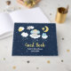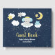 Este bonito e caprichoso livro de hóspedes apresenta um adorável elefante bebê numa coroa dourada sentada numa nuvem com estrelas em queda. Ao fundo está um céu noturno estrelado e lua crescente. O texto combina o script manuscrito e as fontes sans serif para uma aparência na moda e moderna. Isto é perfeito para um chá de fraldas.