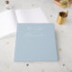 This elegant wedding guest book features a minimalist design with a soft pastel blue cover, creating a serene and sophisticated atmosphere. The centered text is displayed in an exquisite cursive script font, emphasizing the personalization aspect for any couple's special day. Subtle gold and silver star and confetti accents add a touch of celebration without overwhelming the clean layout. Perfect for formal occasions, this guest book combines modern style with understated luxury, making it an ideal keepsake for cherished memories.