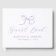 Add a soft and whimsical touch to your wedding with this lavender guest book, featuring a hand-drawn bow and “Guest Book” displayed in elegant script lettering. The delicate lavender hue adds charm and serenity—perfect for spring weddings, garden ceremonies, or romantic purple-themed celebrations. Personalize the cover with your names and wedding date, and customize the spine with your message for a meaningful keepsake you'll cherish for years.