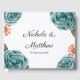 A beautiful floral wedding design featuring watercolor teal roses and soft coral daisies arranged in elegant corners on a clean white background. Perfect for modern romantic weddings, bridal showers, or engagement invitations. This design blends classic charm with a touch of contemporary style, creating a timeless and sophisticated look for your special day.
