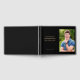 Um elegante e simples design de livro de hóspedes com espaço para adicionar sua foto favorita, sobre um fundo preto sólido com texto dourado. Personalizado com texto na coluna. O dorso é preto sólido.