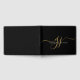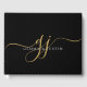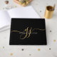 Um livro de visitas de casamento elegante e moderno, com iniciais minimalistas em script dourado em preto, para o seu casamento. Moderno e sofisticado. Um lembrete do seu casamento. Os convidados assinam na recepção. Se desejar alterar as cores das fontes ou o estilo da fonte, após personalizar, basta clicar em "editar mais", selecionar o tipo e ver a paleta de cores à direita e as opções de fonte.