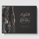 Este elegante livro de hóspedes do casamento apresenta uma design de agata preta, aparada com uma falso brilho de rosa. Personalize facilmente o texto cor-de-rosa rosa num fundo não preto, com os nomes da noiva e do noivo na caligrafia caprichosa da caligrafia manuscrita sobre uma grande e-mail de cinza. Adicione texto adicional da sua escolha à frente e à coluna.