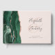 Este elegante livro de hóspedes do casamento apresenta uma esmeralda cor d'água verde agate design aparada com uma falsa brilha de rosa. Personalize facilmente o texto da cinza de carvão em um fundo rosa-pinto-pincelado, com os nomes da noiva e do noivo em uma caligrafia branca sobre uma grande e grande ampersand. Adicione texto adicional da sua escolha à frente e à coluna.