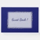 Livro de convidado de sotaque branco em azul marinho com área para informações de data e evento na coluna, suíte de convite de casamento em jogo na loja. Faça uma tripla verificação do seu texto