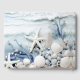 Este moderno livro de hóspedes da casa do lago apresenta um arranjo em 3D com estrelas do mar, conchas e água em tons azuis e neutros e um texto personalizado da casa de praia com o ano estabelecido.