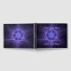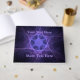 Uma estrela fractal, azul e roxa de David (Magen David). Há dois lugares para você adicionar seu próprio texto no cobrir, e um lugar adicional na coluna. Também estão disponíveis convites, RSVP e cartas de agradecimento, e outros itens com este design.