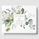 Os parabéns mais sinceros para a Noiva e o Groom! Seus convidados de casamento estão entusiasmados para comparecer ao seu casamento e assinar esta lindíssima e inesquecível folhagem verde de eucalipto pintada à mão, em tons macios de livros de convidados de cinza verde e azul. A design é minimalista, limpa e branca. Essa papelaria simplista, é elegante e elegante moderno, com um toque chic, porém tradicional. O reverso do livro exibe o design correspondente. Cumprimente seu dia especial com nossos convites de casamento, Rsvp opcional e cartão de detalhes. Esta design também está disponível para outros eventos. Crie um tema de coordenação para o seu dia memorável com a nossa papelaria e decoração correspondentes, todos disponíveis para um custo adicional baixo. Todos os meus convites e artigos de papelaria foram feitos com amor, com garantia de satisfação de 100% personalizada!