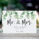 Elegante livro de convidados de casamento do eucalipto Sr. e Sra. noiva e noiva. Personalize este sinal alterando o texto para o nome da noiva e do noivo. Apresenta a letra do script do estilo caligrafia com letra de escrita.