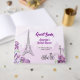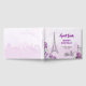 Peça aos seus convidados que assinem com este bonito livro de hóspedes roxo de aquarelas perfeito para um evento especial sobre o tema Paris. A Torre Eiffel está rodeada por belos iriscos roxos com uma silhueta parisiense no fundo. Use para um casamento parisiense, doce 16, quinceañera, chá de panela, chá de fraldas, festa de aniversário, festa de noivado, casamento ou outra ocasião quic. Disponível com itens correspondentes.