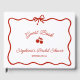 Capture memórias doces com estilo neste divertido design de livro de visitas "She's the Cherry on Top". Com uma fonte vermelha caprichosa emoldurada por uma borda ondulada desenhada à mão e encimada por um laço delicado, a capa é acentuada por um par encantador de cerejas no centro - adicionando um toque divertido e inspirado no estilo retrô. Contra um fundo branco limpo, a arte vermelha se destaca com uma personalidade ousada. Personalize com o nome da noiva, data do evento ou uma mensagem especial para criar um souvenir único que é tão encantador quanto a própria celebração.