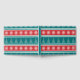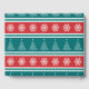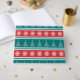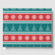 Ilustração feliz de Natal com árvore de Natal e decoração de flocos de neve em fundo vermelho, branco, azul e turquesa listrado