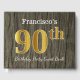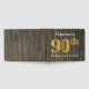 Este design de livro convidado apresenta o número ordinal "90" com uma aparência falsa em ouro. Ele também apresenta um nome personalizado, e um fundo de aparência rústica de madeira falsa. Pode ser usado em uma festa para alguém comemorando seu nonagésimo aniversário. [~Z0000053]