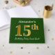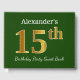 Este design de livro convidado apresenta o número ordinal "15" com uma aparência falsa em ouro. Ele também apresenta um nome personalizado e um fundo verde colorido. Pode ser usado numa festa para alguém que comemora seu décimo quinto aniversário. [~Z0000056]