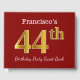 Este design de livro convidado apresenta o número ordinal "44" com uma aparência falsa/imitada em forma de ouro. Também apresenta um nome personalizado e um fundo de cor vermelha. Pode ser usado em uma festa para alguém comemorando seus quarenta e quatro anos. [~Z0000055]