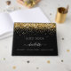 Um guia para uma festa de formatura feminina e glamourosa. Um fundo preto com poeira brilhante dourada falsa. O texto: O nome é escrito com um moderno estilo escrito à mão com traços. Com o texto: Formando - classe de (ou qualquer ano). Adicione seu texto na coluna. Para manter as hastes, exclua apenas o nome da amostra, deixe os espaços ou emoji na frente e depois do nome.