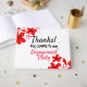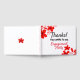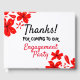 Flores vermelhas ilustradas com texto: "Obrigados para vir à nossa festa de noivado"