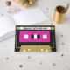 Fita de cassete de música retrô dos anos 80|90 |Livro de Convidado Dourado e Rosa Quente para fazer a correspondência com o seu chá de fraldas de dança, festa de aniversário ou bebê ©Miss Sassy Party Designs