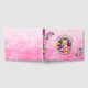 Uma adorável garotinha desenhada pela mão rodeada por flores e um fundo rosa. Personalize o seu livro de convidados de chás de fraldas na área de personalização, adicionando a mãe ao nome do bebê e a data do chá de fraldas.