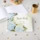 Bonito livro de hóspedes botânico com flores azuis com algumas folhas verdes. Os detalhes da brilha do ouro são simulados. PARA MAIS PRODUTOS CORRESPONDENTES, clique na coleção acima ou entre em contato comigo.