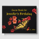 Personalize ou remova facilmente o texto deste adorável livro de hóspedes da festa de aniversário, que apresenta uma borboleta amarela e preta de Tiger Swallowtail em flores vermelhas e cor-de-rosa da Calibrachoa.