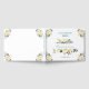 Crie seu próprio design da Primeira Comunhão personalizado. Decorado com lindas e adoráveis cores aquáticas, flores amarelas e azuis de marfim, e rosas com folhagem verde. Com fontes de texto modernas e letras de script de tendência para um livro de hóspedes exclusivo e muito especial.