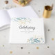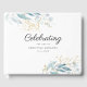 Elegante, verde-azul-ouro, "Celebração da Vida" Livro Branco de Convidados. Fonte elegante e adorável de escrita manual.