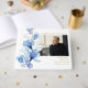Um elegante livro de visitas de memorial funeral de celebração de vida com foto floral azul. Criado por Thisisnotme©
