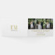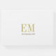 Foto Elegante Do Livro De Convidados De Casamento. A tipografia está em uma fonte moderna. Todo o texto é facilmente alterado para adicionar suas próprias informações. Adicione suas próprias fotos. O reverso apresenta um Monograma com a noiva e as iniciais do Grooms. Este livro de hóspedes do casamento personalizado está sozinho, mas faz parte de um pacote de papéis de carta do casamento do just Fine Designs.