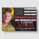 Este design apresenta uma bandeira de bombeiros com faixas pretas e brancas, e uma fina faixa vermelha de linha também. O texto "A lenda está se aposentando" fica acima do nome do bombeiro aposentado, tenente ou chefe. Celebre em estilo! Personalize ainda mais com uma foto do bombeiro aposentado.