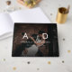 Este na moda, moderno livro de hóspedes, com fotos desbotadas, monograma, texto personalizado e fundo preto, seria uma maravilhosa adição para a sua celebração de casamento. Adicione facilmente suas próprias informações clicando na opção "personalizar".