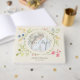 Crie um souvenir atemporal com este elegante livro de visitas de casamento com foto, projetado com um fundo marfim suave e uma delicada grinalda de flores silvestres em aquarela. A capa frontal apresenta sua foto de casamento favorita emoldurada por flores botânicas arejadas, enquanto a parte de trás é finalizada com um monograma floral sutil, criando um visual refinado e coeso.