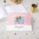 A design tem estrelas cintilantes sobre o fundo cor-de-rosa para bebês e textos de caligrafia modernos que podem ser personalizados de acordo com sua preferência. Substitua a foto no centro por sua própria foto de casamento. Vai fazer um Livro de Convidados adorável para os seus convidados de casamento.
