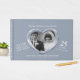 A festa de aniversário de casamento de prata personalizou o livro de hóspedes. Excelente de adicionar um toque personalizado à festa especial de aniversário de casamento. Use este livro de hóspedes para que seus hóspedes deixem mensagens dando ao casal feliz um presente personalizado exclusivo. Personalize com seus nomes de casais e fotos felizes em ambos os lados no quadro de fotos de efeito cardíaco prateado. Cinza da de efeito cardíaco prata arte e design por Sarah Trett para www.mylittleeden.com