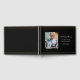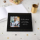 Este clássico memorial fotográfico ou livro de hóspedes fúnebre apresenta a foto do seu ente querido como o ponto focal num pano de fundo preto com acento duplo de estrutura dourada. As palavras editáveis "In Loving Memory" aparecem acima do seu ente querido. Você pode colocar o nome e as datas do seu amado no design, assim como fazer um livro de hóspedes personalizado.