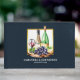 Um design de aquarela bonito e realista, com garrafas de vinho, queijo e uvas que repousam sobre um conselho de madeira enquadrado por uma camada quadrada branca com uma aresta falsa de ouro. Este elegante design é ideal para um país; boho; Tuscano; italiano; vinhedo, adega; fazenda de vinho ou casamento íntimo informal e é adequado a restaurantes, restaurantes e comércios de topo.