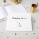 A mão desenhou um livro convidado de Recepção de casamento de desenho animado, com um simples desenho de gatos e design de script. Com uma inscrição personalizável, você pode adicionar seus nomes e informações de casamento. Excelente para planejar seu dia especial com um tema felino.