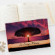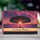 Fotografia incrível de uma árvore solitária na água, com céu roxo e sol apontados no centro da árvore. Parece que a árvore acertou o mundo com montes majestosos de plumb e violeta. Preencha com área para nome e data. No cobrir, o ano de nascimento e o ano de morte podem ser adicionados ao céu. Na coluna falecida e na data dos serviços.