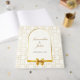 Capture heartfelt wishes in a guest book where gold geometric artistry frames the ivory arch with your names, inviting love's signatures within. This treasured keepsake collects celebration memories while weaving seamless elegance throughout your complete wedding stationery suite. Coordinates with other products from the wedding suite.