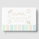 Grad club beach party with cabana stripes in shades of mint green, coastal blue and sandy brown with seashells.