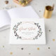 Esta moda e elegante livro de convidados de casamento apresenta uma forma geométrica falsa de ouro rosa, cercada por belos galhos verdes.