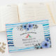 Livro De Visitas Guestbook de Casamento Floral & Azul Stripes