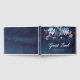 Este livro de casamento tem um fundo de galinheiro e um motivo floral azul nele. É totalmente personalizável e vem com papelaria de casamento encontrada nesta loja.