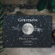 Registre os convidados para o seu grande dia com um Guestbook de Dia de Casamento Lunar. Guestbook design apresenta um céu noturno estrelado adornado com uma lua de cheio e uma trilha de cluster estrelado. Material adicional disponível com esta design também.