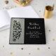 Um elegante livro de convidados de casamento que pode ser personalizado com os nomes da noiva e do noivo. A design apresenta um visual prateado e preto moderno com detalhes pretos.