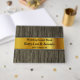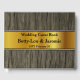 Este respeitável livro de convidados do casamento/casamento apresenta a mensagem "Livro de Convidados de Casamento", os nomes personalizados do casal casado e a data da festa de casamento. Ele também apresenta um fundo com um padrão rústico como madeira faaux, e um dourado falso como faixa. Poderia ser usado para registrar desejos felizes para o casal recém-casado.