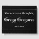 Este mínimo funeral/memorial apresenta a mensagem "Você está em nossos pensamentos," e o nome e as datas de nascimento/morte do indivíduo que faleceu. Pode ser usado para registrar lembranças queridas de alguém que recentemente faleceu.