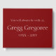 Este manual de funeral ou de memorial minimalista mostra a mensagem "Você sempre estará conosco", e o nome personalizado e as datas de nascimento/morte do indivíduo que faleceu, em texto branco e em fundo vermelho. Pode ser usado para registrar lembranças amáveis de alguém que recentemente passou.